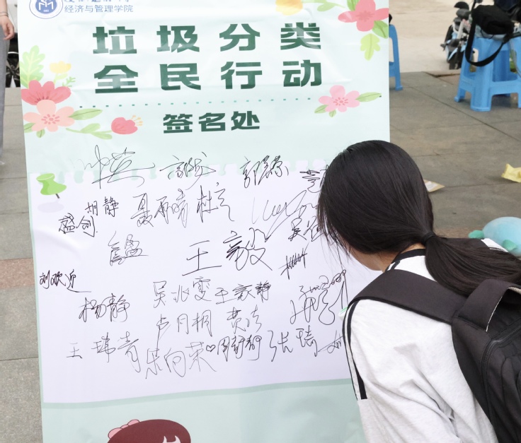 活动开场,负责人围绕垃圾分类的时代背景、现实意义及校园实践价值,与同学们展开深入交流探讨。在交流过程中,大家充分认识到垃圾分类对于资源可持续利用、生态环境保护的重要性,随后同学们纷纷在活动签字板前打卡签名,以实际行动表达对垃圾分类与绿色环保的支持,现场氛围热烈。