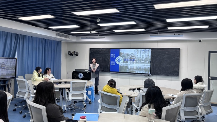 本网讯 为营造良好学术氛围、提升研究生科研素养与创新能力,近日,经管学院于金寨路校区建树楼523教室成功举办“经管研途,方略成章”学术分享专题沙龙。本次活动邀请学院2024级研究生涂灿、李睿鑫担任分享嘉宾,吸引了40余名研究生同学参与其中,经管学院副院长章蓓蓓受邀出席本次活动。