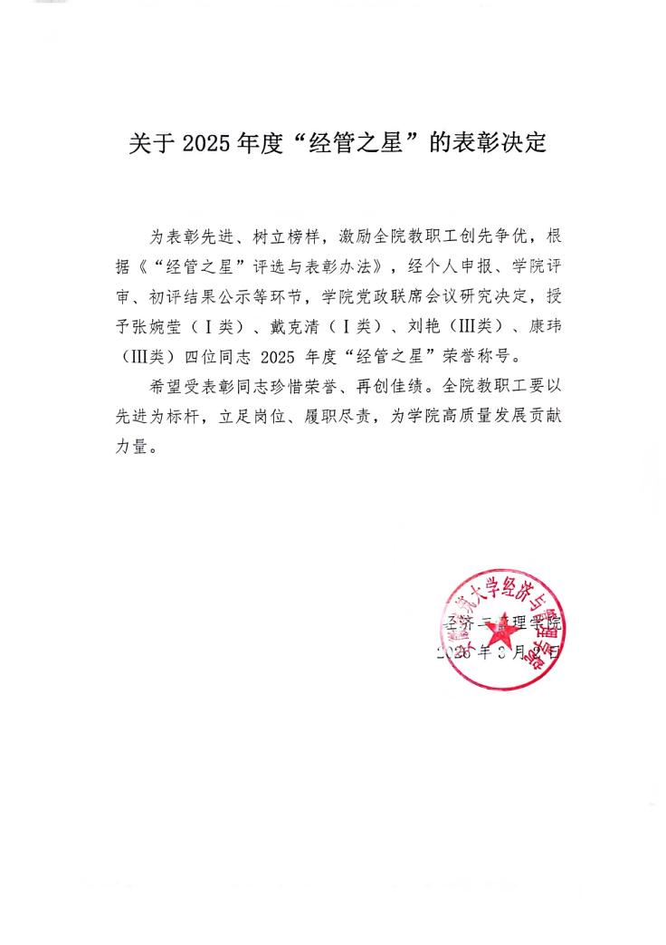 关于2025年度“经管之星”的表彰决定
