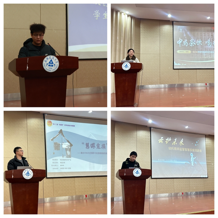 学院优秀双创项目展演环节学院精选生命健康、科技金融、社会服务三大领域的优秀项目集中亮相。谯扶堂中医药茶饮项目深耕亳州中医药文化,以产业赋能乡村振兴,实现商业价值与社会价值双赢;房屋保险智能评估项目融合CNN与迁移学习技术,研发智能定损公估平台,填补行业技术应用空白;云护未来托育监管智慧系统项目直击托育行业监管痛点,打造系统化解决方案,为行业规范化发展提供经管智慧。各项目深度融合专业知识与实践需求,充分展现了学院学子的创新能力与责任担当。
