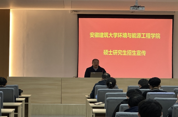 本网讯 为了切实提升学校研究生生源质量、拓展研究生生源渠道,11月16日,环能学院院长谢发之、副 院长黄健一行5人赴皖江工学院土木工程学院进行调研,开展研究生招生宣传工作。皖江工学院土木工程学院党总支书记王瑜、院长唐德高以及相关专业教师参加调研交流,并组织学院给排水和土木专业学生80余人参加研究生招生宣讲会。