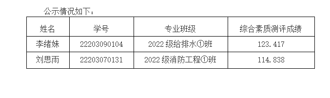 根据校学工部网站2024年9月9日发布的《关于做好2024年度国家奖学金、国家励志奖学金及国家助学金评定工作的通知》要求,经个人申报,资格审查,学院评审委员会讨论、初审,拟推荐2022级给排水①班李绪妹、2022级消防工程①班刘思雨等2人参评2024年国家奖学金。公示时间:2024年9月18日至9月24日。