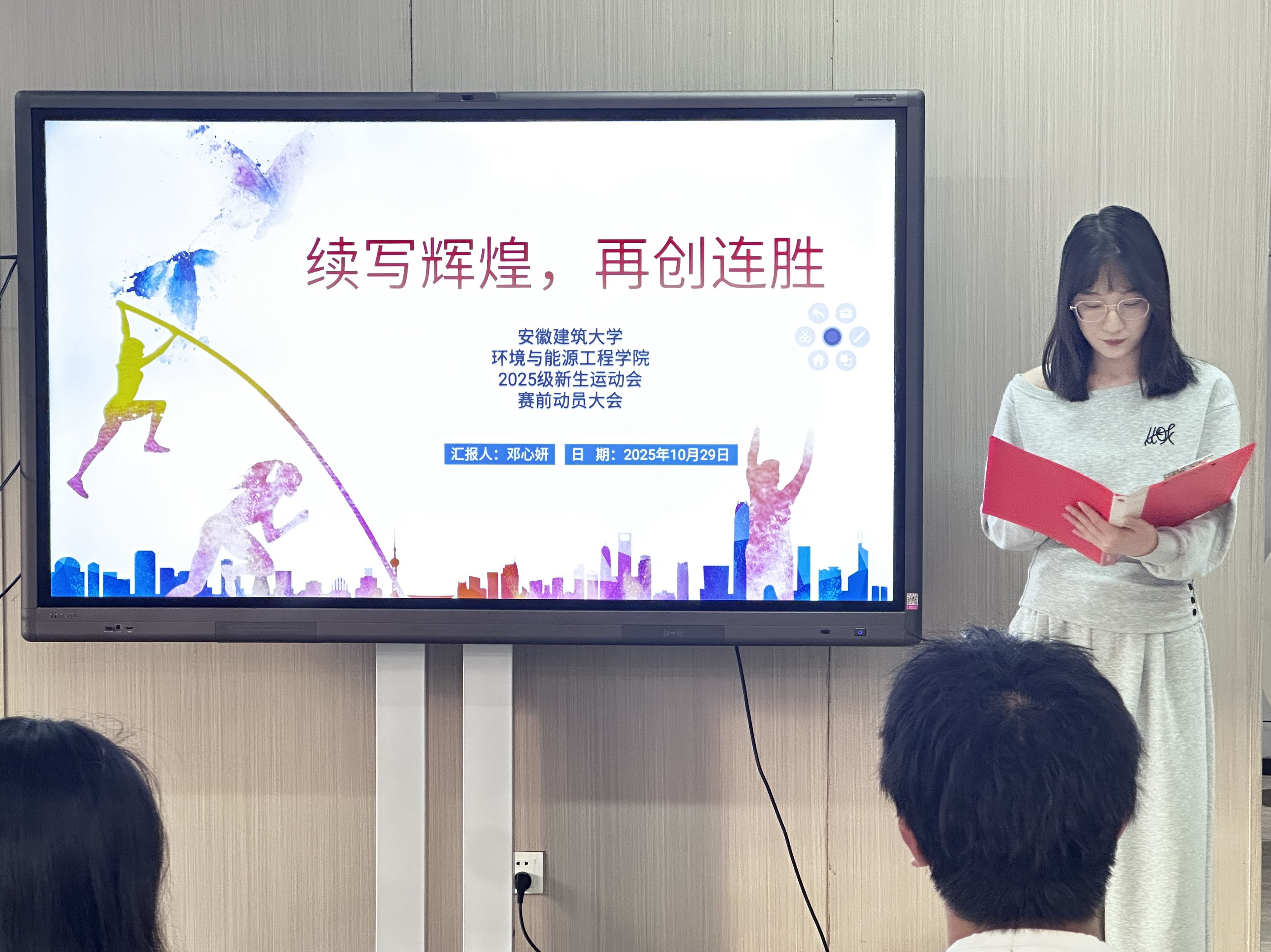 优秀运动员代表邓心妍围绕“回首来时路”“聚焦当下时”“展望新征程”三个维度,深情回顾了自己不凡的运动生涯,并对未来发展作出展望。她以“生来为赢,习惯登顶;全力以赴,超越自我”的人生信条,激励在场同学既要传承体育精神,更应脚踏实地、笃行不辍。她勉励新生珍惜每一寸光阴,注重每一个细节,做到“赢得光彩,输得坦荡”,在坚持中铸就无悔青春。