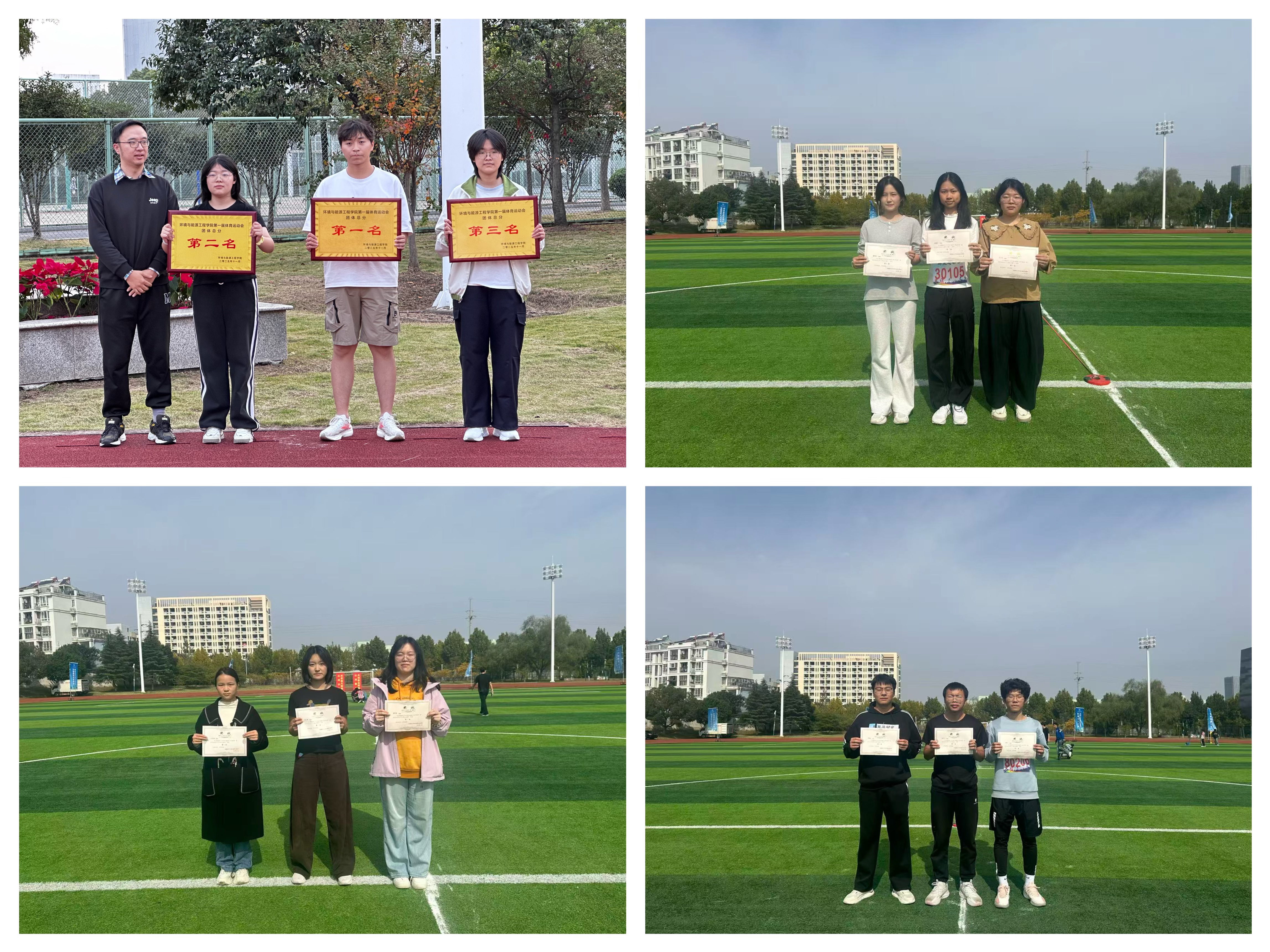 经过两天激烈角逐,运动会圆满落幕,各项赛事奖项花落各家。最终,2025级能源与动力工程1班、能源与动力工程2班、建筑环境与能源应用工程1班凭借出色的综合实力,分别斩获本届新生运动会团体总分前三名。