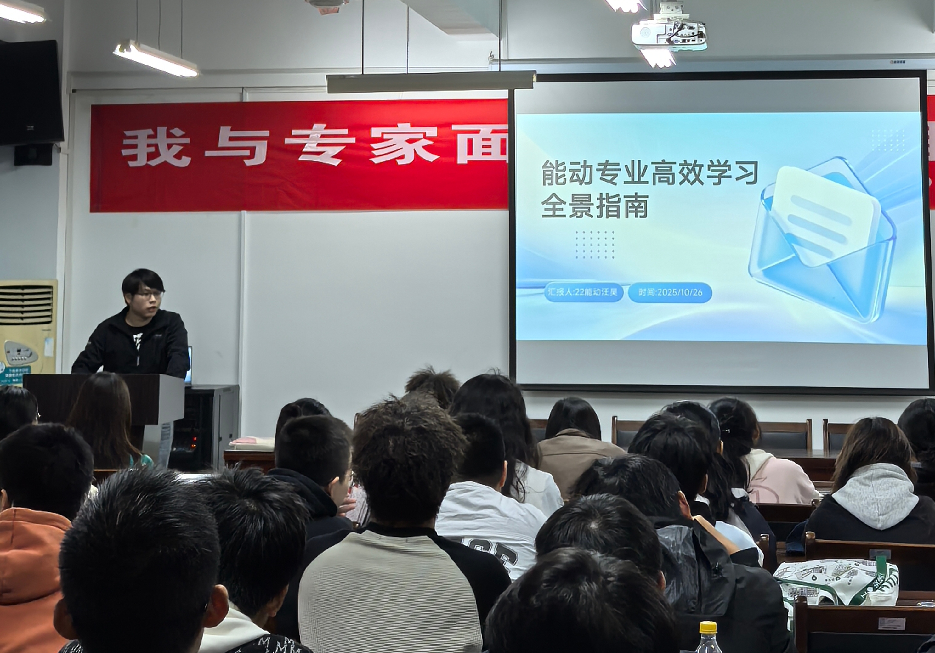 本网讯 为了帮助2025级新生提升学习效率,深度了解专业内涵,明确大学四年的学习方向,帮助新生更好地规划大学学习生涯。beat365在线唯一官网环境与能源工程学院邀请了2023级博士研究生方浩和2022级能动、2026届推免东北大学的本科生汪昊,分别就“如何高效学习”和“如何规划大学四年的人生”为2025级能源与动力工程专业学生做出了精彩的分享。在此次活动中,新生与学长们面对面交流,现场氛围热烈,同学们踊跃提问,互动积极,充分展现了大家对未来大学生活的热情和期待。