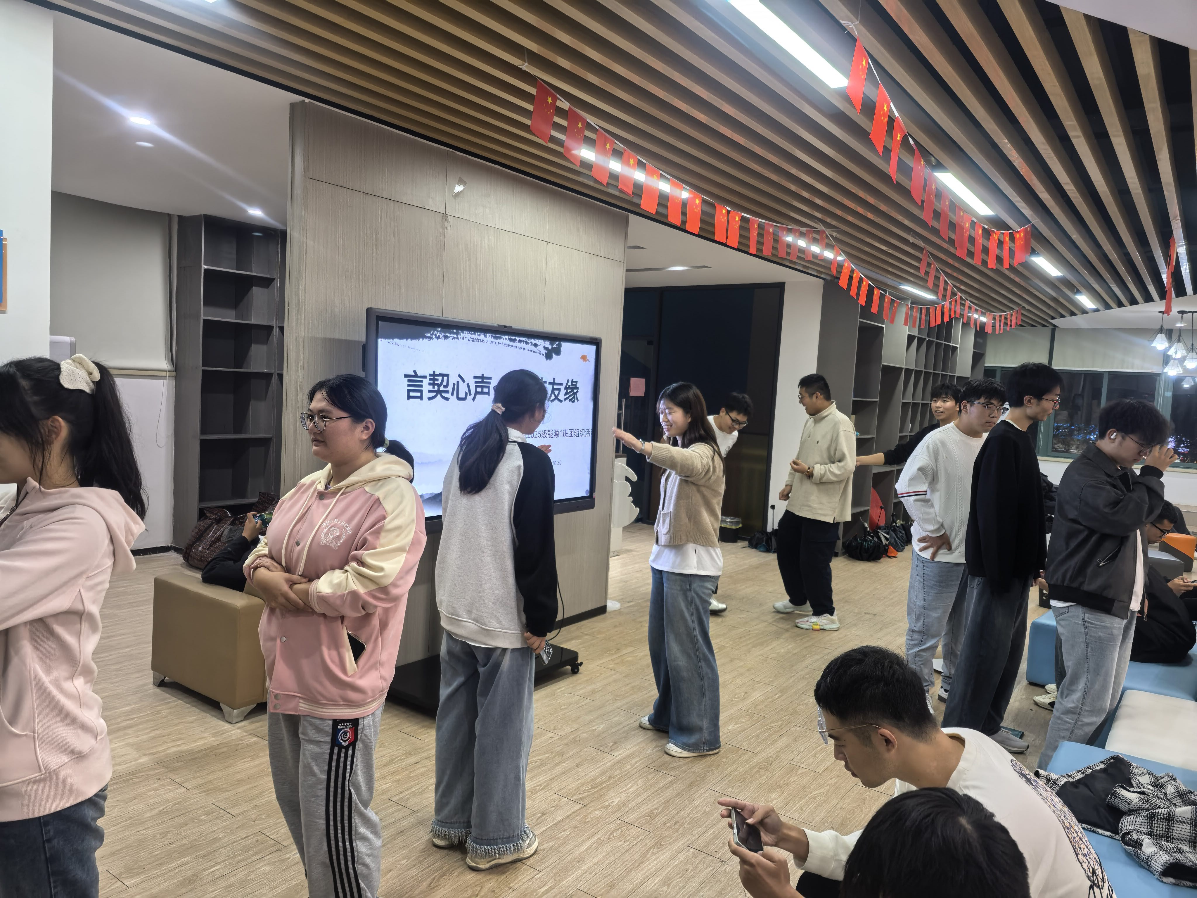 协作增情谊,劳动促融合手工创作结束后,趣味劳动协作游戏环节点燃全场热情。延续“搭子文化”的新颖形式,先通过“匿名技能配对”环节让新生结缘:同学们在纸条上写下自己的劳动技能标签(如“手工小能手”“创意脑洞王”“协作小达人”等),经随机抽取、双向选择后,组建专属“劳动搭子”小组。随后的趣味PK赛精彩上演:“非遗知识大闯关”考验大家对节气文化、传统手工艺的认知储备“劳动技能接力赛”要求搭档配合完成简易手工任务,从材料分拣到成品组装,既比拼速度更考验协作,夸张的操作与默契的配合引发阵阵欢笑;“创意作品解说赛”中,各小组轮流展示手工成果,分享创作思路与劳动感悟,让文化表达与情感交流深度融合。整场游戏环节,陌生感在协作中消融,友谊在劳动中滋生,充分展现了新生们昂扬向上的青春活力。