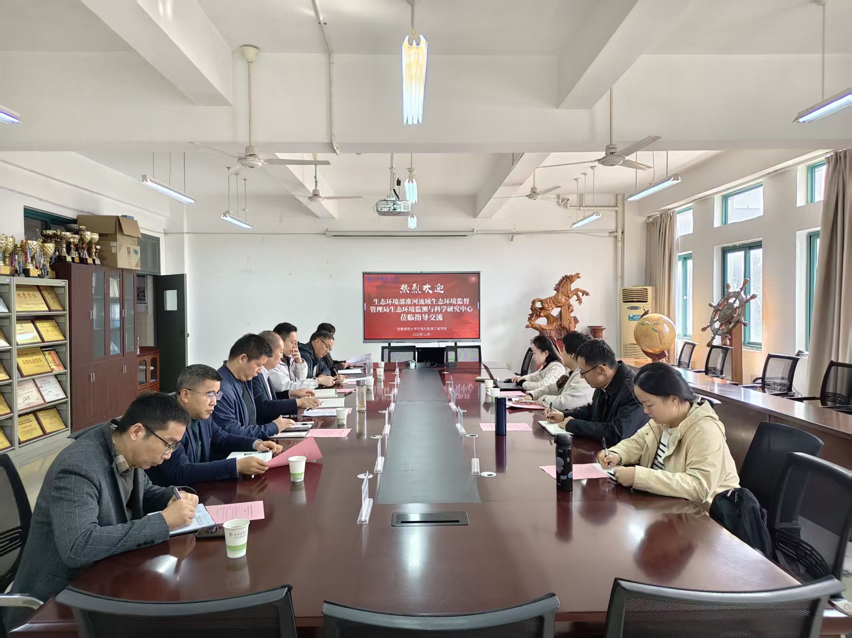 本网讯  近日,生态环境部淮河流域生态环境监督管理局生态环境监测与科学研究中心(以下简称“淮河流域局监测与科研中心”)主任郁丹英一行到访环境与能源工程学院,就深化政校合作、共推淮河流域生态环境高水平保护开展交流座谈。座谈会由学院院长谢发之主持,淮河监测与科研中心副主任吕雷、科研所所长张婷婷、生态监测室负责人周怡雯及环能学院相关领导及部门负责人、骨干教师代表参加交流。