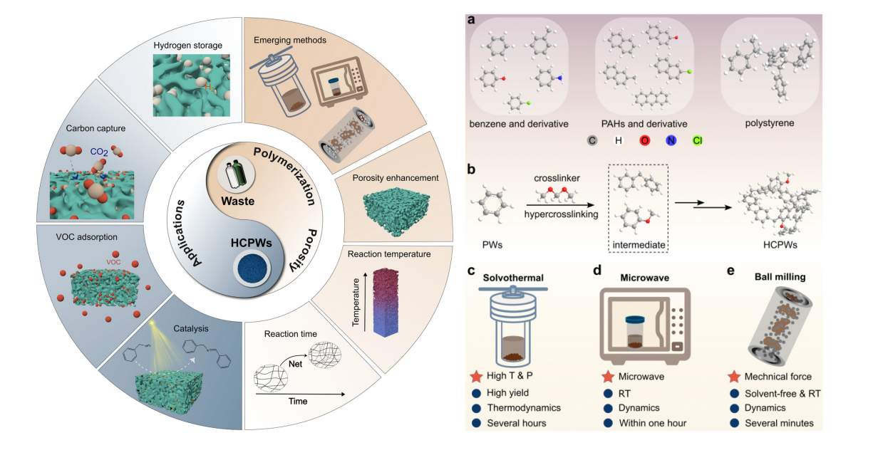 随着全球废弃塑料与工业副产物问题日益严峻,苯基废物的高效回收与高值转化成为环境与材料领域的重要议题。然而,传统填埋或焚烧处理方式存在二次污染与资源浪费问题,制约了其可持续处理。近年来,基于傅-克烷基化等反应的超交联策略迅速发展,可将废物直接转化为高比表面积多孔材料,但各种合成方法缺乏系统梳理与性能比较。