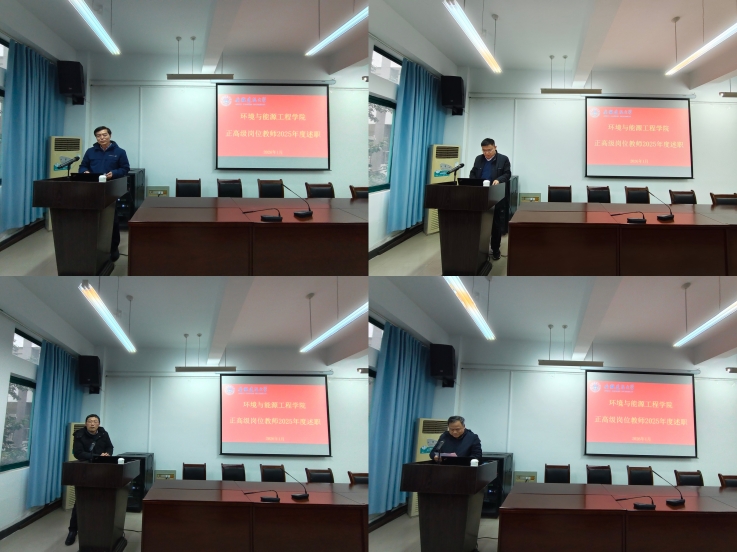 本网讯 为全面总结2025年度工作成效,压实正高岗位教师履职责任,充分发挥其在教学科研、人才培养、学科建设中的示范引领作用,根据工作安排,1月26日,环境与能源工程学院在徽文楼202会议室召开2025年度正高级岗位教师述职大会,学院领导班子成员、全体教职工参会,会议由学院党委副书记、院长谢发之主持。