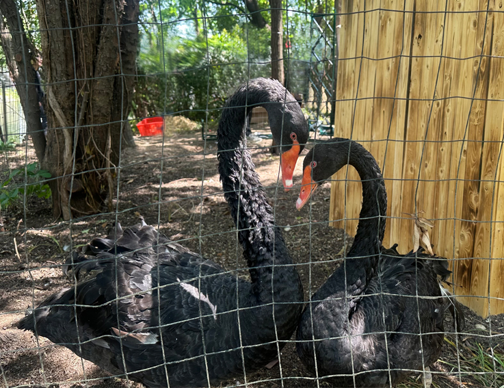 考虑到黑天鹅对栖息环境较为敏感,学校精心筹备,主动赴合工大对接有关事宜,了解饲养细节。在岛上搭建了安全舒适的栖息场所,完善了防护设施,做好水质监测,实时关注健康状况,让黑天鹅在“新家”中幸福生活,繁衍生息。