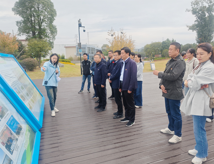 在薛家洼生态园,党员们认真聆听讲解,在近水平台观看薛家洼治理工作展板,了解生态环境治理与保护修复情况,现场感受薛家洼由昔日的“滨江不见江、临水不亲水”的脏乱差区域,通过系统性生态修复与环境整治,蝶变为如今百姓亲江亲水亲绿的美丽岸线和城市“生态客厅”,深刻感悟习近平生态文明思想和习近平总书记关于全面深化改革重要论述的生动实践。