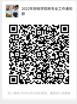 学生报名成功后,请扫描二维码,加入财税学院本科转专业考核微信群,群昵称改为:姓名-学号-拟转专业名称。测试和面试顺序,以及其它未尽事宜将在微信群中发布。