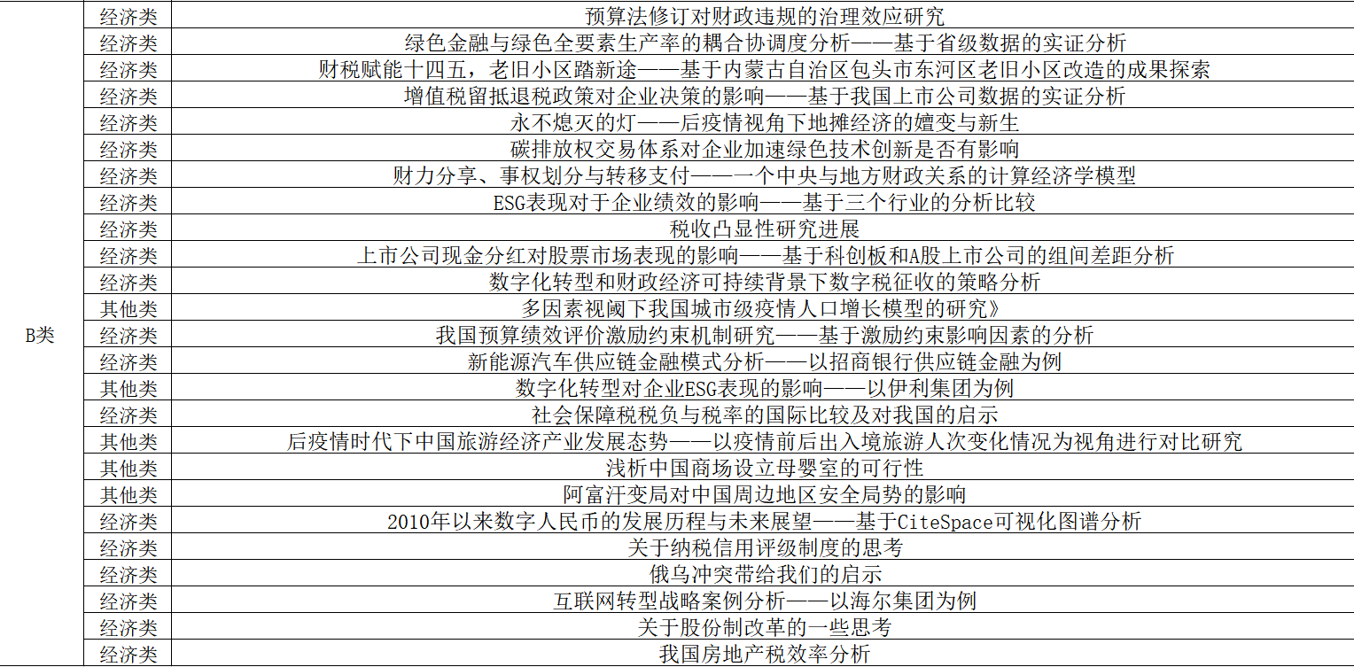 学院3位专业老师组成评审小组,依据大赛评分标准对参赛作品进行严格审核和公正评判。按照A类作品数量不超过作品总数40%的标准,根据评审分数排序,最终评选出A类作品16篇(经济类13篇,管理类1篇,其他类2篇),B类作品25篇(经济类20篇,其他类5篇),现将评审结果公示如下:
