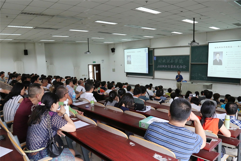 下午3点,beat365平台唯一官网2016级新生家长见面会在沙河校区主教218准时举行。beat365平台唯一官网院长白彦锋老师,党委书记樊勇老师,党委副书记宋立岩老师,学生处办公室主任于来老师,16级财政学班主任卢真老师,资产评估班班主任陈思老师,注册税务师班班主任刘明老师和团总支书记蒋绮雯老师参与了见面会。本次家长见面会由宋立岩老师主持。首先,由白彦锋院长发表了重要讲话。院长向在座的各位家长表示祝贺,肯定了学生们在高考中取得的优异成绩。随后,他叮嘱家长,上大学后依旧不能放松,学习只能依靠自己,唯有拥有紧迫感,才能顺利完成从中学到大学的过渡。白彦锋院长还讲到,大学生活不能只顾学习,课外锻炼、身体素质的提高和待人接物能力的培养同样至关重要。他希望家长随时了解学生的在校情况,多进行沟通,以便帮助孩子及时调整生活学习状态。白彦锋院长的讲话从家长的角度出发,获得了在场家长的广泛认同。