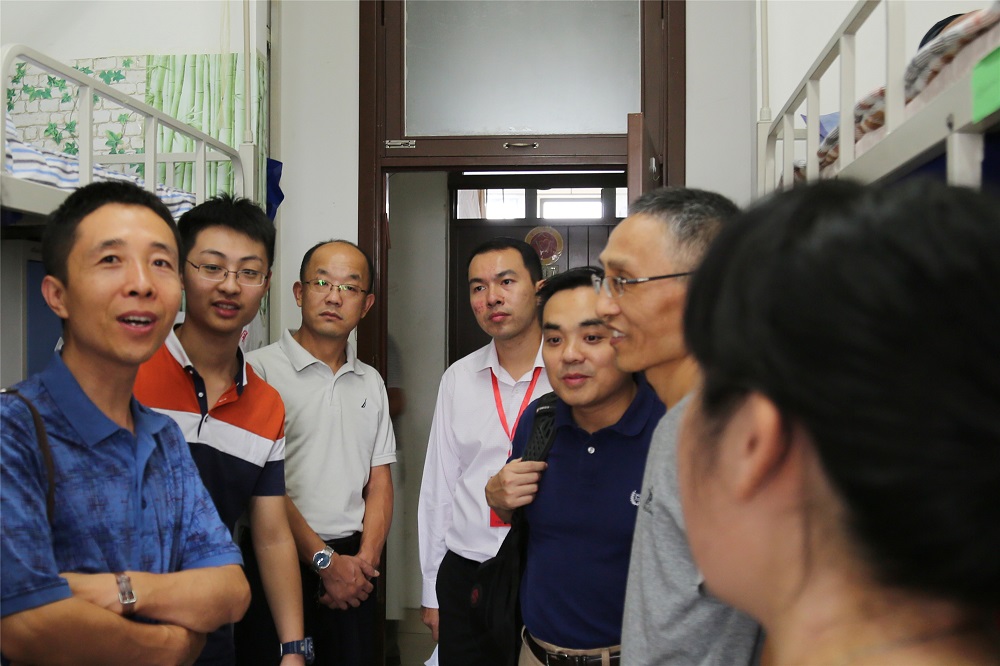 下午2点,beat365平台唯一官网院长白彦锋老师,党委书记樊勇老师,党委副书记宋立岩老师和学生处办公室主任兼2016级新生辅导员于来老师走访了2号学生宿舍楼,看望正式成为中财学子的新生。看到领导老师们的到来,新生和家长们立即停下手头的工作,与老师们积极交流。领导老师亲切地询问同学们的住宿情况,并耐心解答家长们的问题和疑虑。临走时还不忘提醒学生们北京秋季干燥,希望同学们尽快适应生活环境。