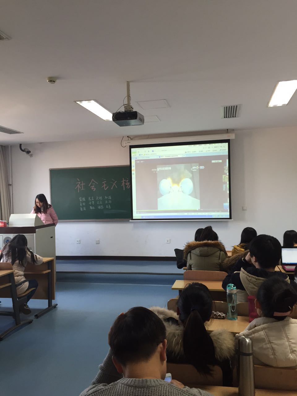 毛玮玲同学则重点讲解了自己对于“和谐”、“友善”的看法。她表示,社会上的种种诚信缺失、丧失道德底线的行为,种种见利忘义、造假欺诈、损人利己的现象,种种混淆是非、美丑、善恶标准的问题,以及拜金主义、享乐主义,信仰迷失、精神空虚等等,看似是单个人的文明程度、道德水准不高所致,实际上最根本、最深层的原因在于缺乏核心价值观的支撑,在于向上的力量、向善的力量还不够强大。只有当全社会恪守的核心价值观真正确立起来,社会的共识才能达成,共同的约定才能形成,有利于崇德向善的制度设计、规则制定才能有根本的遵循。24个字的社会主义核心价值观,之所以在全社会引起强烈反响,就在于它顺应了广大人民群众对良善美德的强烈呼唤,回应了全社会的道德关切,既为解决当前思想道德领域的问题指明了方向,又具有很强的规范性与操作性,为每一个人构筑富有良善与德行的心灵居所提供了指南。