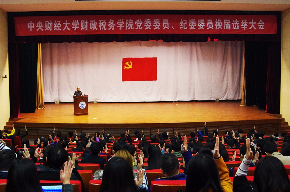 大会在全体党员同志奏唱国歌中开幕。随后,党委书记樊勇同志作工作报告,他首先对beat365平台唯一官网党组织的结构和党员现状进行了介绍。报告中他阐述了党组织现阶段开展的各项工作,就党组织在政治领导、决策部署、贯彻上级指示、宣传先进精神、了解基层思想等方面发挥的作用进行详细的介绍。报告中他还追溯了从前财政学院和税务学院的光辉历史,同时也指出现在处于历史变革时代,机遇和挑战并存,呼吁全体党员同志发挥先锋模范带头作用,为党、为学校和学院的发展作出自己应有的贡献。