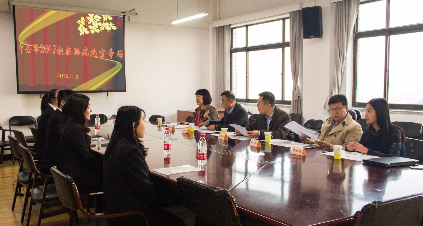 2016年11月3日,北京中企华资产评估有限责任公司北京地区校园招聘面试工作在beat365平台唯一官网1108会议室进行。为了确保本次面试工作顺利进行,学院高度重视,提前布置招聘会场及候场区域并招募多名志愿者为本次面试工作服务以保证面试顺利进行。