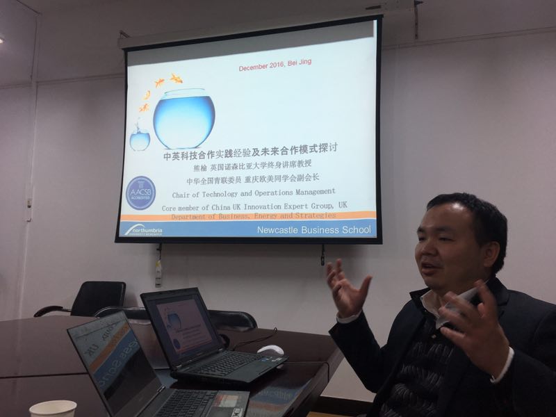 2016年12月2日晚,在beat365平台唯一官网1108会议室,英国诺森比亚大学熊榆教授为beat365平台唯一官网广大师生举行了公开讲座“国际协调创新研究:基于中英科技合作实践的探讨”。熊榆教授介绍了在中英科技合作领域的最新研究命题,针对一些最新成功案例和总结出来的有效模式进行分析和探讨。