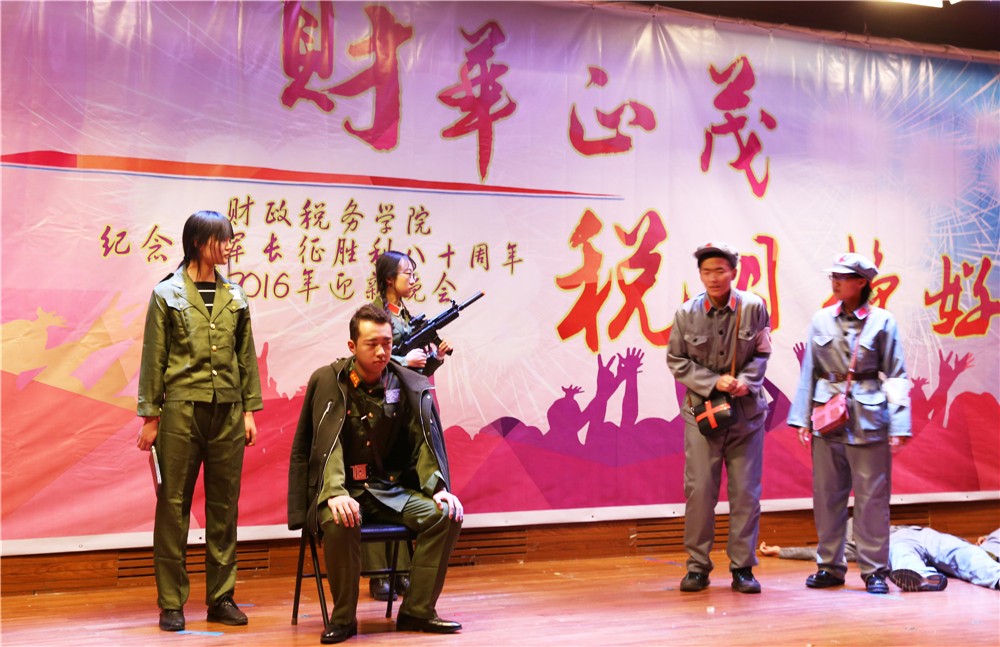 今年是长征胜利80周年,为了纪念革命先辈艰苦的创业,晚会的第二部分《忆往昔,长征岁月》编排的节目使同学们忆往昔峥嵘岁月,重温了长征精神。藏舞《雪域藏宝》,话剧《同志!同志!》、诗朗诵《英雄颂》、快板《说长征》等精彩的节目带领大家追忆了革命先辈艰苦创业的历程,经典大合唱《四渡赤水出奇兵》更是气势磅礴的震撼了全场。缤彩纷呈的节目弘扬了长征精神,也彰显出财税学子继承革命先辈遗志的浩然正气。