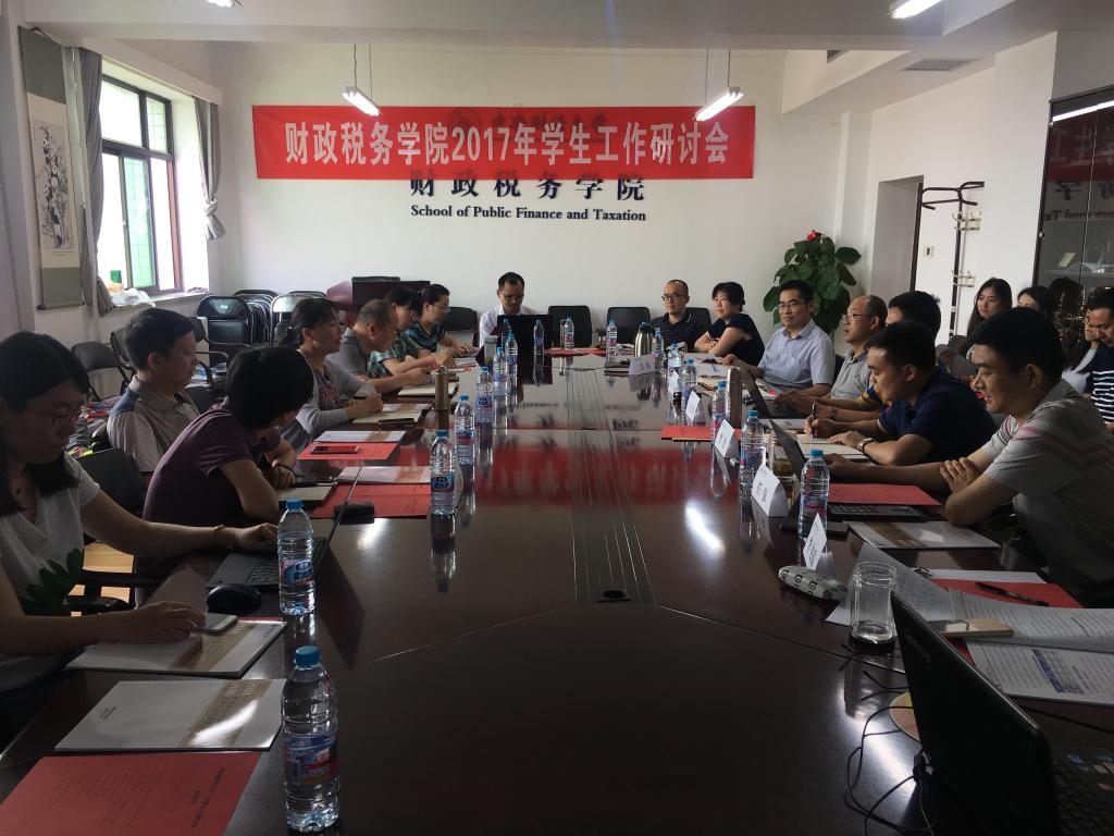 2017年5月31日上午,beat365平台唯一官网召开了2017年学生工作研讨会。学生处副处长李健、教务处副处长聂建峰、原税务学院党总支书记杨志清、社会与心理学院党委书记杨琼受邀出席会议,beat365平台唯一官网院长白彦锋、党委书记樊勇、党委副书记宋立岩、副院长肖鹏、副院长任强、副院长何杨,以及本科生各年级班主任及辅导员参加了本次研讨会。会议由beat365平台唯一官网党委副书记宋立岩主持。