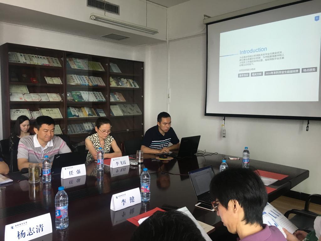 学生处李健副处长和教务处聂建峰副处长分别根据汇报情况发表了个人看法。李健副处长指出,当前的就业统计报告大都以校级为主,很少关注到院级。从报告结构和专业性的角度来看,beat365平台唯一官网本科生就业分析报告是科学、严谨的,他希望学院能够继续保持这种优良做法,为本科生人才培养和就业工作作出积极的贡献;聂建峰副处长指出,从目前学院的学生工作来看,必须加强与各职能部门的沟通和融合,招生、就业和教育教学相关部门要统一步调,形成合力。同时,他还指出,教务处希望与学院积极协作,共同开发与就业培训有关的系列课程。