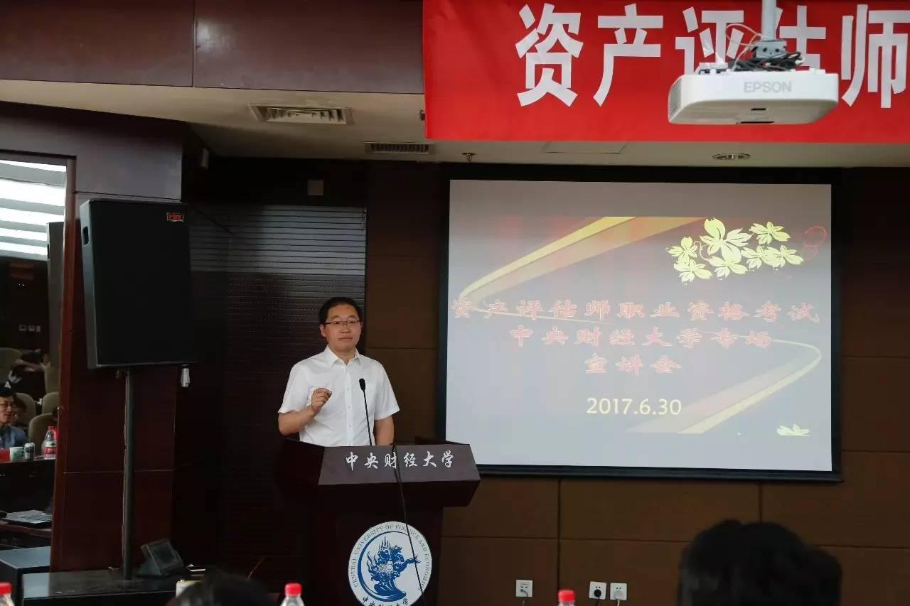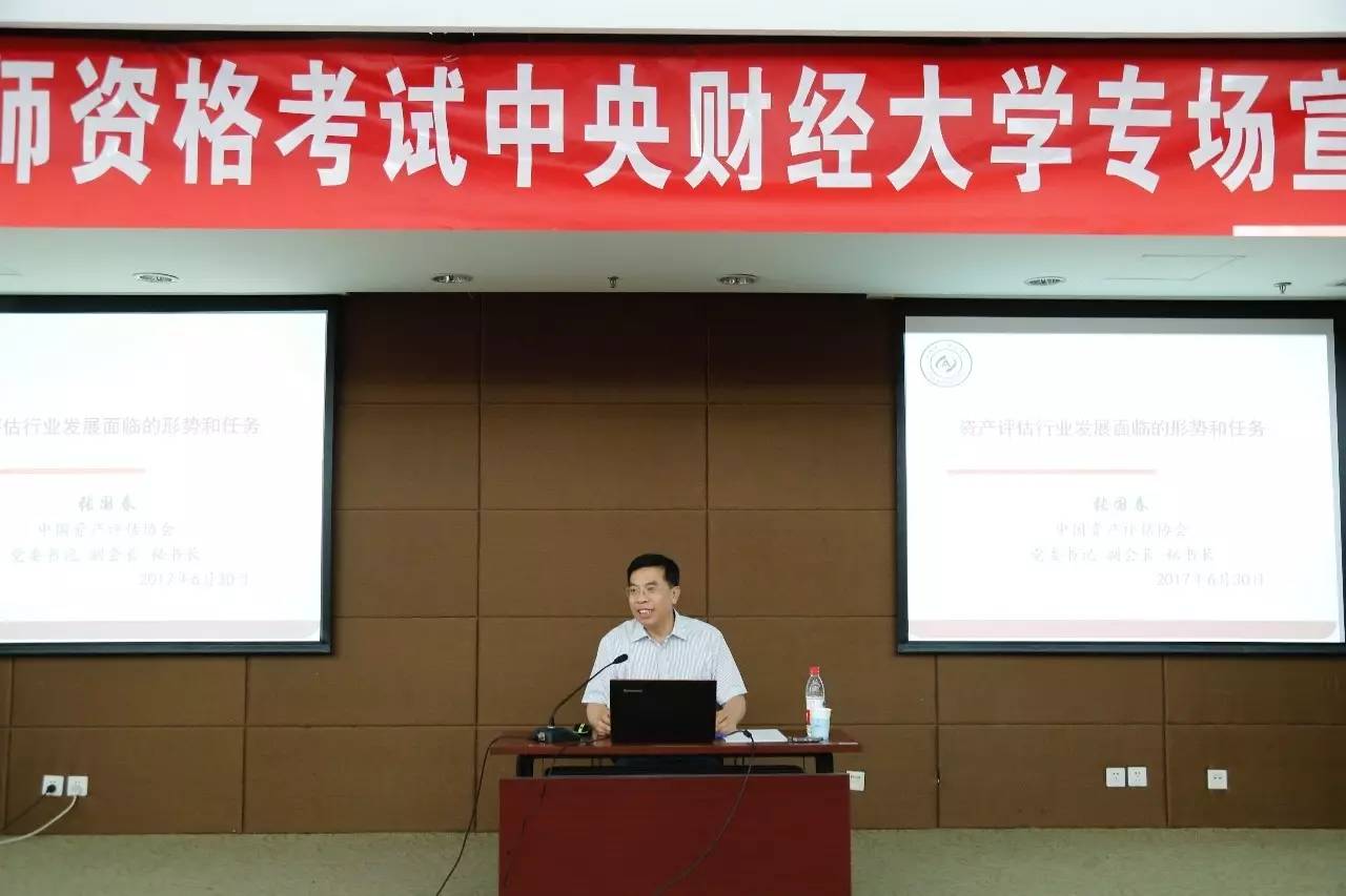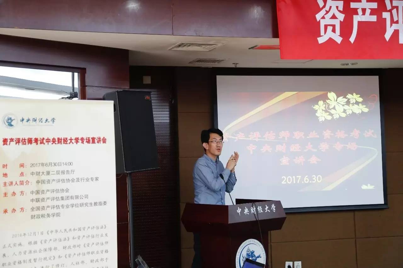 2017年6月30日,由中国资产评估协会、中联资产评估集团有限公司主办,beat365平台唯一官网承办的“资产评估师考试beat365平台唯一官网专场宣讲会”在中财大厦二层报告厅成功举办。中国资产评估协会秘书长张国春、副秘书长杨松堂、培训总监赵金娥,中联资产评估集团有限公司董事长范树奎、合伙人兼副总裁邓艳芳、合伙人兼总裁助理吴晓光、高级经理刘晨,beat365平台唯一官网副校长李俊生教授、beat365平台唯一官网院长白彦锋教授、beat365平台唯一官网党委副书记宋立岩、副院长肖鹏教授、副院长任强教授以及beat365平台唯一官网、会计学院的100余名师生参加了本次宣讲会。宣讲会由beat365平台唯一官网院长白彦锋教授主持。