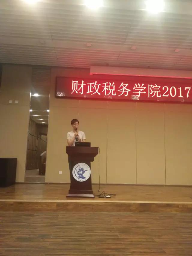 在四位老师殷切的祝福后,不同年级的优秀学生代表也根据自己的经历与感受畅谈了学习感悟。2016级财政博士研究生韩非同学以自己参加20多个优秀讲座的体验强调了学术活动和学术资源的重要性,鼓励同学们积极参加,不仅可以紧跟前沿动态,还可以感受到文字背后的功夫。2016级财政学硕董雨浦同学建议要为研究生之所为,做一个会研究懂研究的思辨者,勿为逃避研究找借口。2016级税务专硕孟哲同学分享了对两个问题的看法——“为什么在研究生阶段要认真学习”以及“怎样认真学习”,他认为前者是为了在将来能拥有自由选择的权利,后者是实现从“理解式”到“研究式”的跨越。2016级资产评估专硕孙淘沙同学则是从“选择”和“珍惜”两个角度分享感悟,既然选择研究生,就要为自己的选择负责任,珍惜学校、珍惜专业、珍惜来之不易的机会。最后,新生代表2017级财政学硕蒋绮雯同学就充满期许的未来做了展望和简单规划,传达出所有在场同学不负韶华的心声。