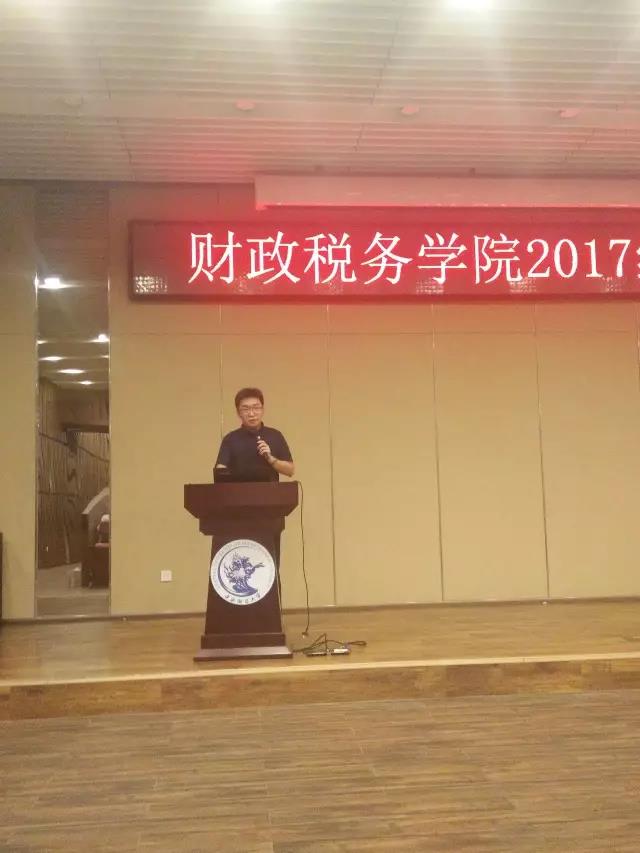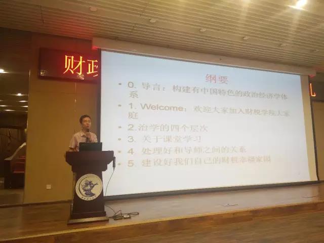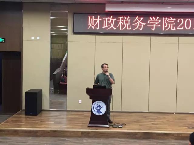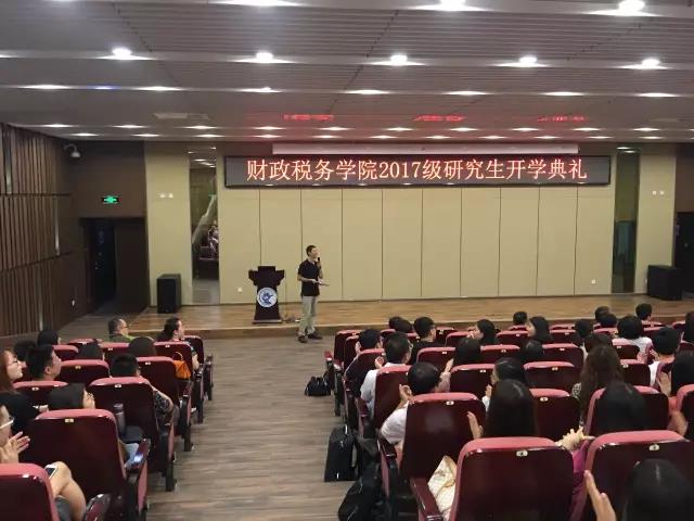 在“院长谈治学”环节,白彦锋院长以“朴实、厚实、踏实建设财税学科的中财学派”为主题,以习近平同志7.26讲话精神为引,表达出“勇于推进实践基础上的理论创新”的决心和魄力。在表达对新同学的欢迎之后,白院长从治学的多个角度展开论述,给同学们在学术研究与生活方面上了中财第一课。第一要学会理财。“由俭入奢易,由奢入俭难。”白院长始终秉持俭以养德的理念,告诫同学们莫沦为电商时代的奴隶,时刻保持成熟的判断力。第二要有健康的精神生活。正确看待交友和恋爱,平衡好生活和学习的节奏,为自己的选择负起责任。第三要珍惜课堂学习。一方面,明确意识到研究生培养的不可逆性,做好课堂学习,摒弃碎片化阅读,保持学术诚信;另一方面,博览群书,教学相长。第四要处理好和导师的关系。莫做“精致的利己主义者”,对导师始终抱有敬重感,勿以庸俗的礼物和信息为扰,而要在专业领域多做沟通,以干练的行动快速响应导师的要求,独立完成一篇规范的学术论文便是对导师最大的尊重。最后,在财税改革40年即将到来之际,白院长希望年轻的一代人可以一同为建设中财学派而努力,为全面复兴的财税治理代言。