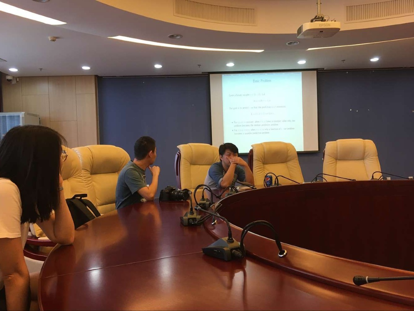 9月11日下午,Lee教授带来了“Double Boosting for High Dimensional IV Regression Models”的学术讲座。文章首先指出了通常建模所用的工具变量所带来的缺陷,即:在工具变量维度较大时,参数估计依然是非相合的。文章提出可以用Boosting算法,即通过识别、挑选工具变量,增加参数的拟合度。9月12日下午,Lee教授为全校师生带来了“Asymmetric AdaBoost for High Dimensional Maximum Score Regression”,文章对记分函数规则加以变换,融入了人对事物的判断与事实结果的差异,文中包含了机器学习等前沿理论。讲座结束之后,Lee教授和博士生进行了深入的交流。
