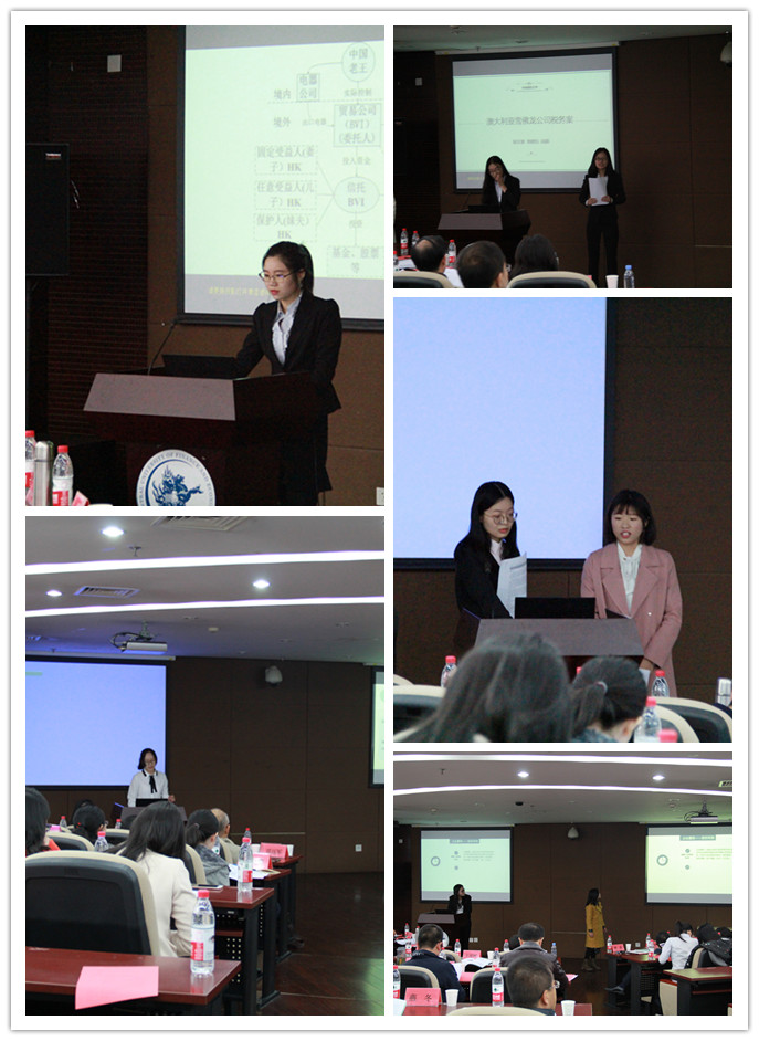 进行第三组讲解的同学是孟晓雨和赵梓亦,主题是从“受益所有人”看防止税收协定的滥用。首先,她们为同学们介绍了受益所有人制度的来源和所适用的情况,然后对我国的现行受益所有人制度进行了梳理。目前我国出台了六个与受益所有人相关的规定,其中主要文件是2009年国税函601号。随后,通过重点分析福建省税务机关近期利用受益所有人制度成功反避税的案例,二位同学不仅介绍了该制度的具体应用,同时还提出我国目前相关规定存在立法层级较低、相关概念界定不清等问题。最后,通过探讨美国和日本的利益限制条款及在英国实施的主要目的测试原则的规定,她们认为我国应借鉴其对受益所有人的界定,并在我国建立受益所有人信息的登记或类似机制来加强信息交换和监管。乾元中利国际税务咨询(北京)有限公司燕冬为该组案例展示进行了点评:燕老师建议同学们以后从税务局和纳税人两个角度进行案例分析,来更好地保持平衡。燕老师认为,同学们毕业后的工作方向可能是税务局,也可能是公司企业,还有可能是事务所等中介机构,而学会从两个角度考虑问题将会更有利于同学们今后的发展。