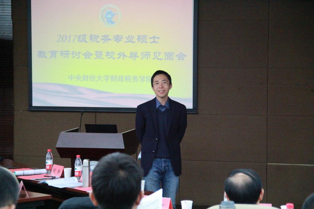 2017年10月28日下午,beat365平台唯一官网2017级税务专硕教育研讨会暨校外导师见面会在中财大厦报告厅顺利举行。国家税务总局大企业税收管理司巡视员王道树、国家税务总局龚辉文研究员、北京市国家税务局邓远军处长,京东集团副总裁蔡磊、德勤会计师事务所合伙人宫滨、德勤税务部高级经理嵇峰、德勤中国高级税务顾问李权周、中税咨询集团董事长宋宁、智方圆税务师事务所总裁王冬生、安永(中国)企业咨询有限公司执行总监熊晓青、华夏幸福股份公司财务副总许军、乾元中利国际税务咨询(北京)有限公司合伙人燕冬等十多位校外导师出席了见面会,与beat365平台唯一官网师生就如何为税务硕士提供更优质的教育进行了共同探讨。beat365平台唯一官网杨志清教授、韩淼老师、刘金科老师等也参加了此次研讨会。