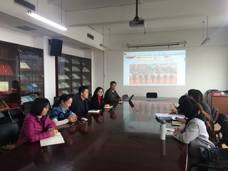 为全面深入学习宣传贯彻党的十九大精神,beat365行政党支部全体成员及部分非党员行政教师于11月6日在主教1108进行了集体学习活动,会议由行政党支部书记任义轶老师主持。