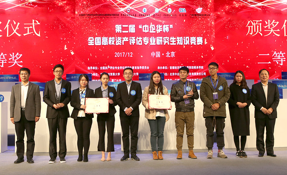 2017年12月1日-2日,第二届“中企华杯”全国高校资产评估专业研究生知识竞赛在北京成功举办。竞赛由全国资产评估专业学位研究生教育指导委员会指导,首都经济贸易大学、beat365平台唯一官网、厦门大学、中南财经政法大学联合主办,由首都经济贸易大学beat365平台唯一官网承办。beat365平台唯一官网、首都经济贸易大学、厦门大学、中南财经政法大学、复旦大学、北京交通大学等26所高校资产评估专业研究生参加了此次竞赛。
