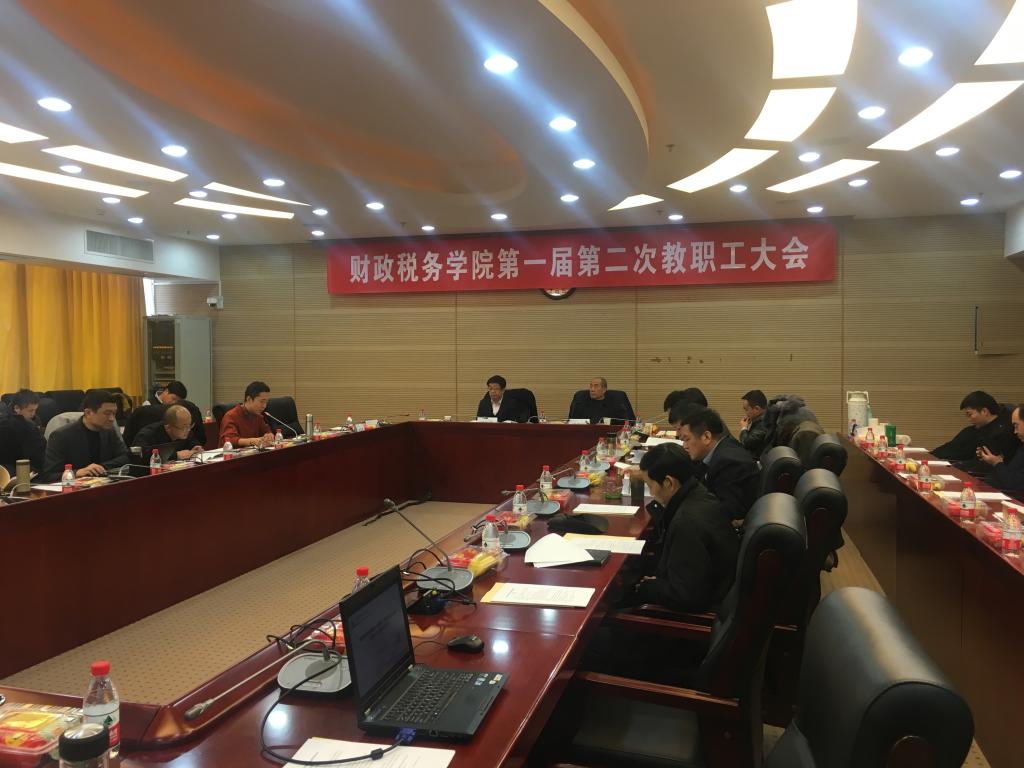 会议第一阶段是教职工大会,由学院党委书记樊勇主持。白彦锋院长作财税学院2017年工作报告,详细阐述了全院一年来在本科教学与实践管理、科研与学科建设、师资队伍建设、研究生培养与专业硕士学位教育、本科生培养管理与成长服务、党建与思政工作、工会与行政教辅工作等方面的工作进展及成果。在取得可喜成绩的同时,白院长也指出了学院可以继续进步的空间,阐述了具体的解决方案和措施。随后,白院长对学院财务执行情况做了详细介绍,提出了学院在2018年的工作计划。