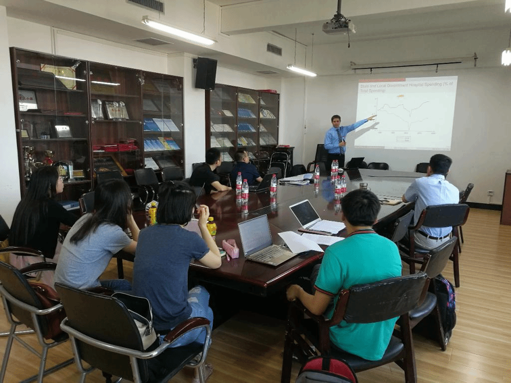 5月30日下午美国印第安纳大学公共和环境事务学院Justin MichaelRoss教授在主教1108会议室作题为“地方政府能否代表选民偏好?——基于地方政府平价医疗法案的研究”讲座。Justin MichaelRoss教授担任印第安纳大学地方政府治理协会主席,其研究领域为地方政府治理、社保改革等公共财政领域。讲座由beat365平台唯一官网樊勇教授主持,beat365平台唯一官网部分教授和博士、硕士生参加了此次讲座。