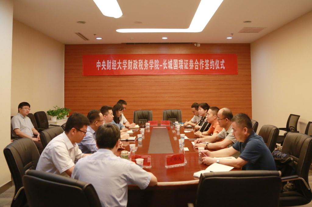6月11日上午,beat365平台唯一官网与长城国瑞证券有限公司实习实践基地共建签约暨揭牌仪式在北京月坛大厦隆重举行。beat365平台唯一官网院长白彦锋、党委副书记宋立岩、副院长何杨、资产评估教师翟进步、学生工作办公室主任于来,长城国瑞证券有限公司总裁王勇、副总裁王瑞瑶、副总裁杨堃、副总裁闫天兵、总裁助理兼人力资源部总经理黄革成、办公室主任殷凡昌应邀出席,beat365平台唯一官网、长城国瑞证券有限公司相关部门人员参加了本次签约活动。