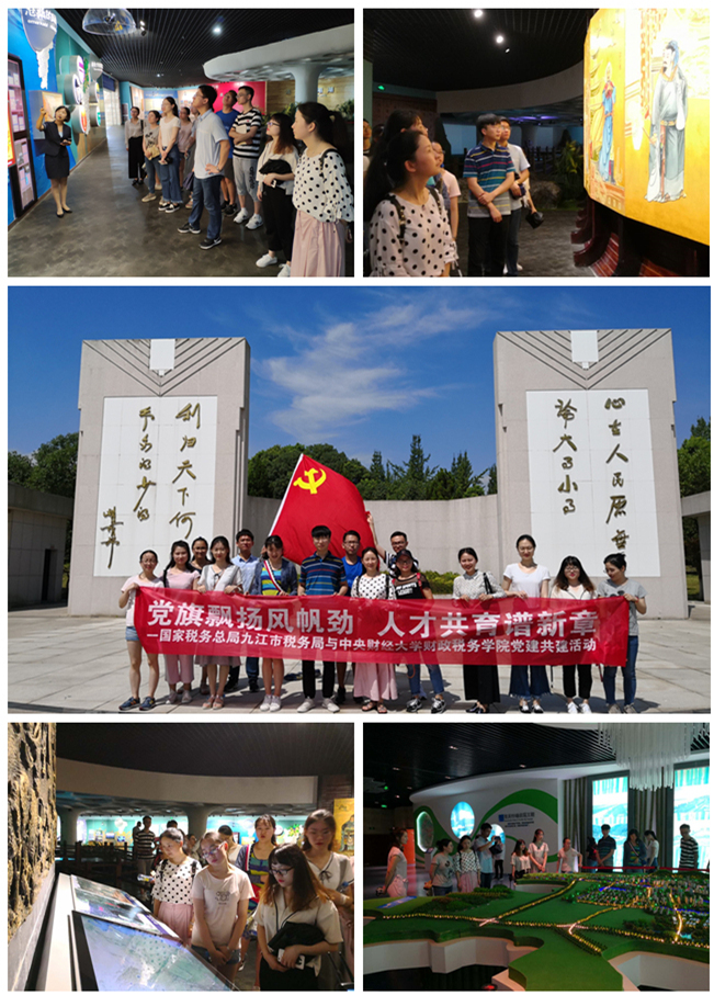 实习期间九江市税务局的同志们特地与beat365平台唯一官网的师生们共同开展了党建活动。7月17日,在九江市税务局同志们的带领下,同学们前往共青城市参观了耀邦陵园、鄱阳湖生态经济区规划馆和义门陈遗址。通过此次活动,同学们对老一辈无产阶级革命家胡耀邦同志的生平事迹有了深入了解,对 “心在人民,原无论大事小事;利归天下,何必争多得少得”这句体现优秀共产党员博大胸怀的名言记忆尤深。在鄱阳湖生态经济区规划馆,同学们对江西的风土人情,政策规划等有了进一步的体会。在义门陈遗址,同学们领略了传承优秀家风的重要性并深切感受到“义门陈”所蕴含的优秀传统文化。