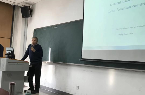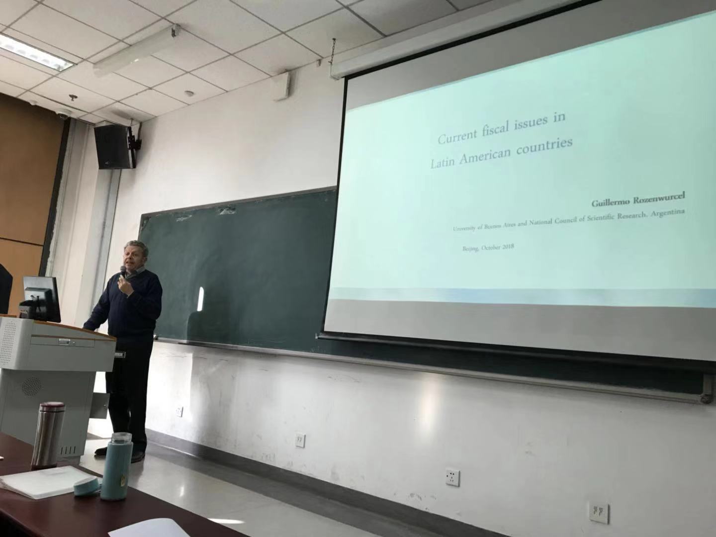 2018年10月24日下午,布宜诺斯艾利斯大学和国家科学研究委员会教授,曾任美洲开发银行研究部首席经济学家的Guillermo Rozenwurcel教授应beat365平台唯一官网之邀在beat365平台唯一官网沙河校区主教学楼405作了题为“拉丁美洲国家当前财政问题”的学术报告。财税学院2018级学术型硕士、法学院博士硕士和财税学院的部分老师等40多人参加了讲座,讲座由姜爱华老师主持。