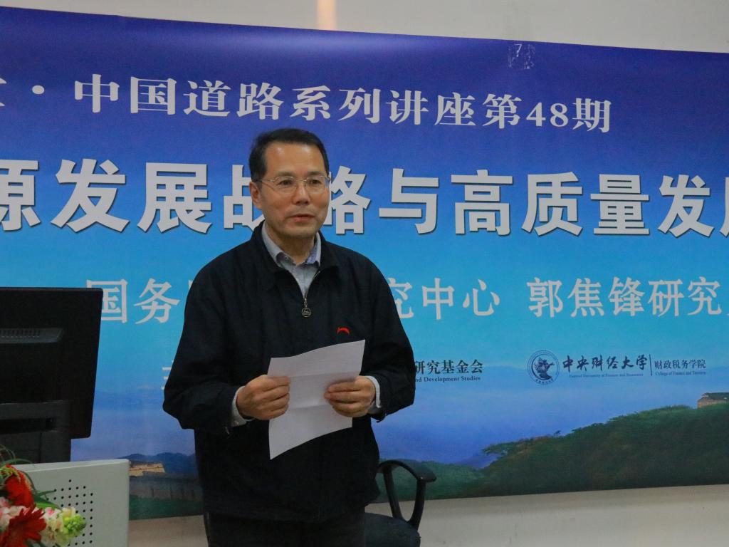 12月10日下午,由beat365平台唯一官网、中信改革发展研究基金会联合举办的财税论坛·中信大讲堂·中国道路系列讲座第48期,在beat365沙河校区举行。国务院发展研究中心郭焦锋研究员受邀主讲《新时代中国能源发展战略与高质量发展的财税政策研究》。beat365平台唯一官网院长白彦锋教授、中信改革发展研究基金会郭克彤秘书长、中信出版集团副总编辑、《经济导刊》杂志社社长季红、财税学院教授高萍,以及财税学院部分教师、研究生和本科生70多人出席了讲座。讲座由beat365平台唯一官网财税学院教授、中信改革发展研究基金会咨询委员、中信改革发展研究院资深研究员温来成主持。
