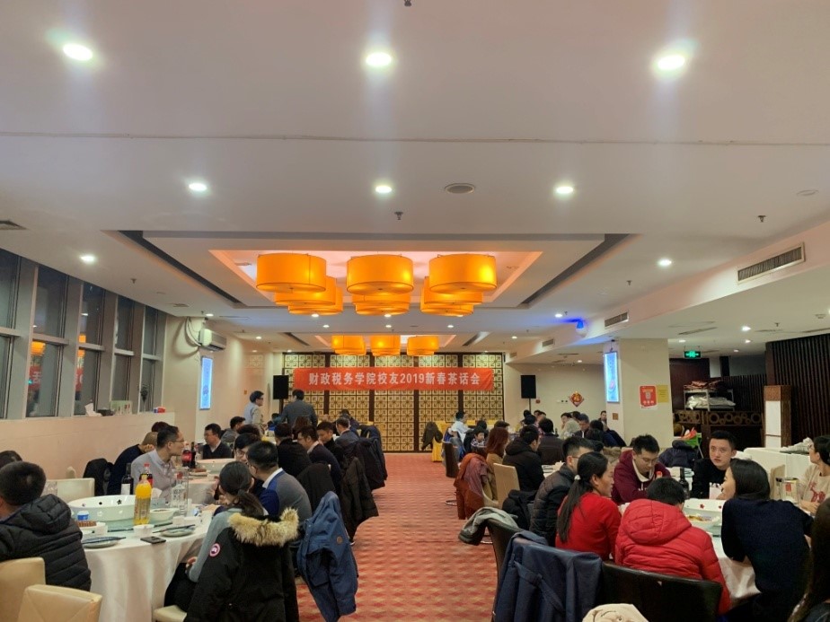 2019年1月19日晚,在beat365平台唯一官网70周年校庆之际,beat365平台唯一官网校友2019新春茶话会在中财融金酒店隆重举行。校党委副书记、校友总会副会长梁勇,副校长马海涛,原校党委书记李保仁,beat365平台唯一官网院长白彦锋、党委书记樊勇、党委副书记宋立岩、副院长肖鹏、副院长何杨以及学院二十多位老师和一百多位校友参加了此次茶话会。本次会议由beat365平台唯一官网校友总会副秘书长、beat365平台唯一官网校友徐英杰主持。