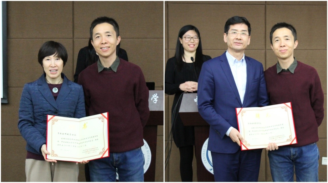 白彦锋教授、李小荣副教授先后介绍了资产评估专业校外、校内导师,陈思老师宣读校外导师分配名单。之后,白彦锋教授为在场2019年新聘任校外导师代表胡劲为、邓艳芳发放聘书。