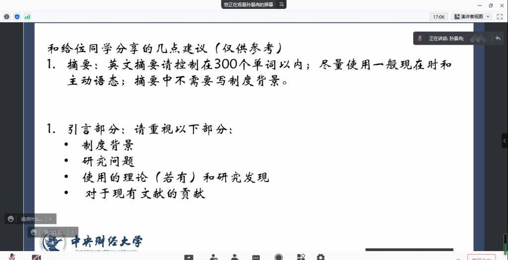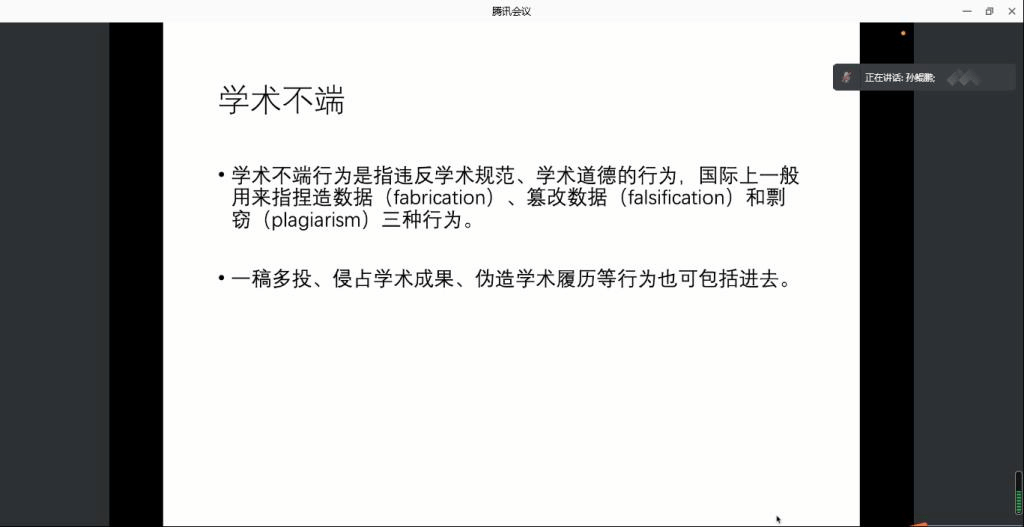 11月17日下午,beat365平台唯一官网采取腾讯会议方式召开了学术道德会议。此次会议由beat365平台唯一官网副院长李小荣教授主持,孙景冉老师、孙鲲鹏老师分别从国外和国内的学术道德判断标准和科研规范发展情况作了详细介绍,beat365平台唯一官网全体研究生400余人参加了本次会议。