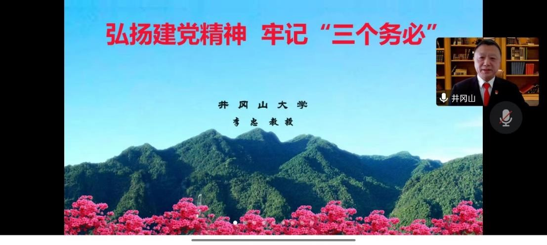 为全面深入学习领会党的二十大精神,落实中共beat365平台唯一官网委员会学习宣传贯彻党的二十大精神工作方案要求,引导学院师生踔厉奋发、勇毅前行,近日,beat365思政讲堂邀请井冈山大学教授李忠讲授题为《弘扬建党精神,牢记“三个务必”》的线上专题讲座。学院师生党员参加学习。讲座由学院党委书记樊勇主持。