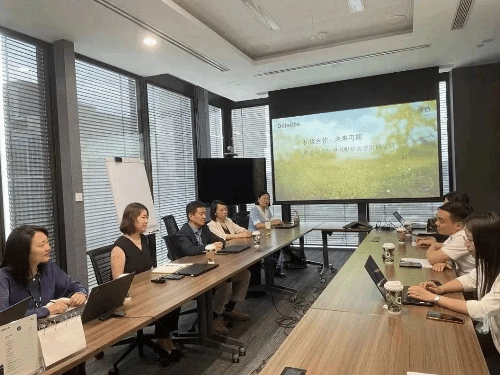 下午樊勇院长、何杨副院长、刘金科副院长、陈宇老师和徐燕妮老师一行赴德勤北京分所,与华北区税务主管黄晓里等人就2023届毕业生就业情况和中国税制授课等进行深入探讨。