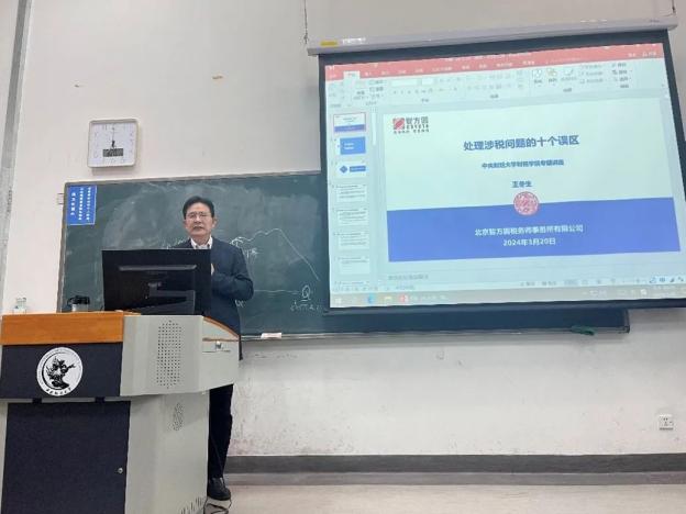2024年3月20日晚,beat365邀请北京智方圆税务师事务所有限公司董事长王冬生老师,为2023级税务专业硕士同学们带来《处理涉税问题的十大误区》的专题讲座。王冬生老师通过案例引入,将案例与实务相结合,详细介绍了实务中处理涉税问题的误区,并对如何避免误区提出了建议。