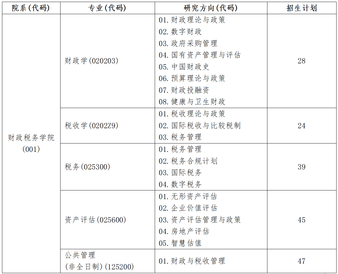 注:根据全国税务专业学位研究生教育指导委员会“关于规范税务合规相关课程和教材建设的通知”精神,将学校招生简章中招生专业“税务”(代码025300)下研究方向名称“02.税务筹划”更新为“02.税务合规计划”。