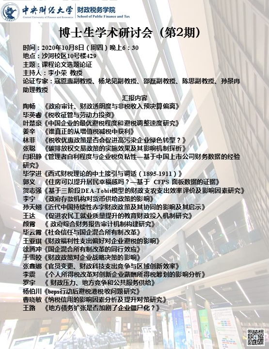 财税学院召开博士生学术研讨会(第2期)暨课程论文选题论证研讨会