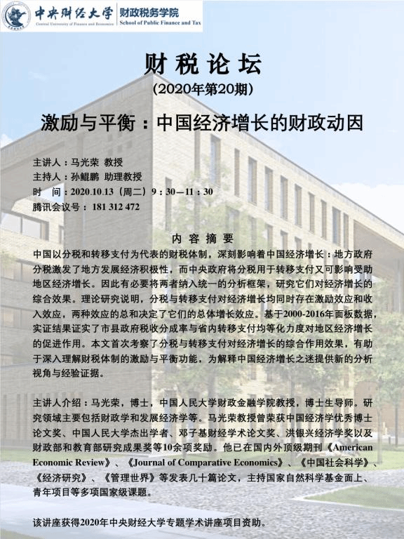 【财税论坛】激励与平衡:中国经济增长的财政动因