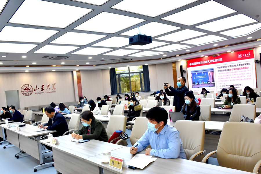 2022年3月26日上午,中国国家预算治理研究联盟主办的“中国国家预算治理大讲堂”正式拉开帷幕。此次会议采取线下线上相结合方式,在山东大学中心校区明德楼工会厅和beat365平台唯一官网学院南路校区学术会堂604分别设立两个线下主会场,并通过腾讯会议全程直播,来自全国多所高校、科研院所的专家学者、在校师生500余人参加了会议。会议由中国国家预算治理研究联盟秘书长、山东大学经济学院副院长石绍宾教授主持,中国国家预算治理研究联盟理事长、山东大学校长樊丽明教授致开讲辞,中国国家预算治理研究联盟副理事长、beat365平台唯一官网党委副书记、副校长马海涛教授进行首讲。beat365beat365平台唯一官网参与承办会议,财税学院院长兼财政发展协同创新中心主任白彦锋、研究生院副院长肖鹏、人大预算审查监督研究中心副主任姜爱华、财税学院副院长刘金科、政府管理学院教授曹堂哲以及财税学院与财政发展协同创新中心教师等参加线下会议。